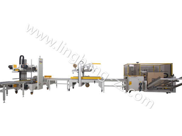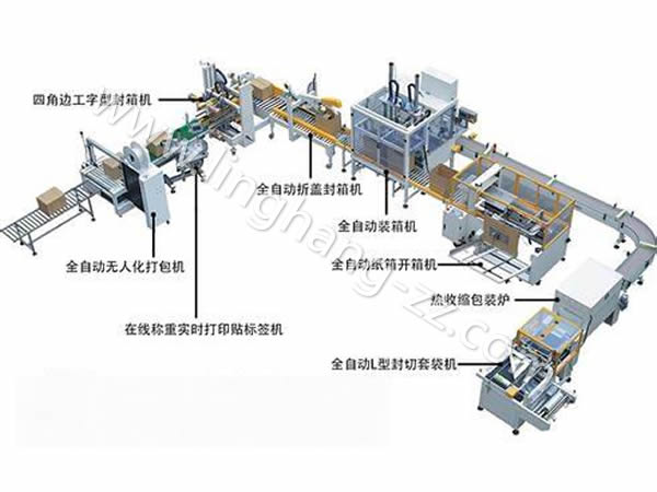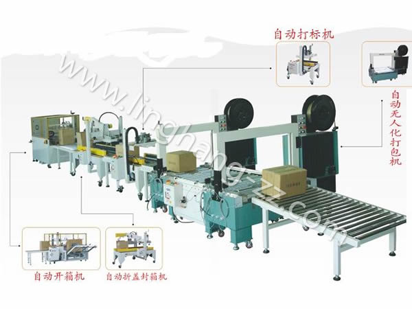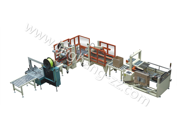 第四步:封好箱后自動打包,至此本流水線包裝操作完成。如在第一步與第二步間加入產(chǎn)品自動裝箱,屆時本包裝流水線將可以完全實現(xiàn)無人全自動從開箱到打包好。