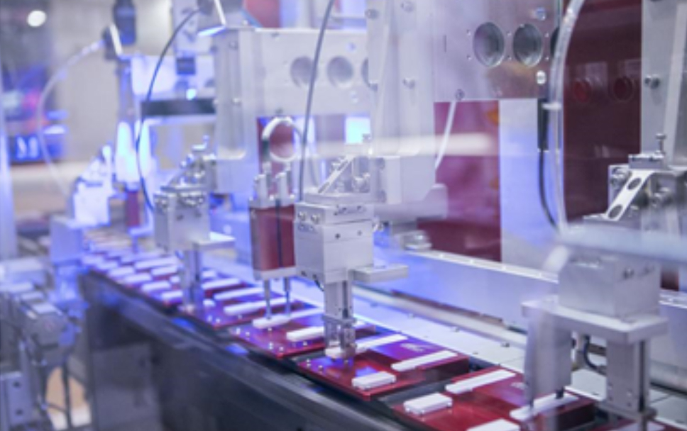 1.膠體金試劑卡組裝機功能介紹:膠體金試紙條儲料—>試紙自動供料—>CCD檢測及定位不良—>自動裁切—>剔除不良—>接料定位—>底殼供料—>試紙裝入底殼—>CCD視覺檢測入殼效果—>面蓋供料—>紫外激光打標—>打標效果CCD檢測—>壓合面蓋—>壓合效果復檢CCD—>自動出料計數(shù)等一系列動作,各檢測工位均配置自動剔除不良品功能。此條生產線,可使膠體金類試劑卡后段組裝工序實現(xiàn)完全自動化,同時CCD讀碼功能將產品信息同步綁定上傳到客戶工廠MES系統(tǒng),可實現(xiàn)產品信息存儲與追溯。